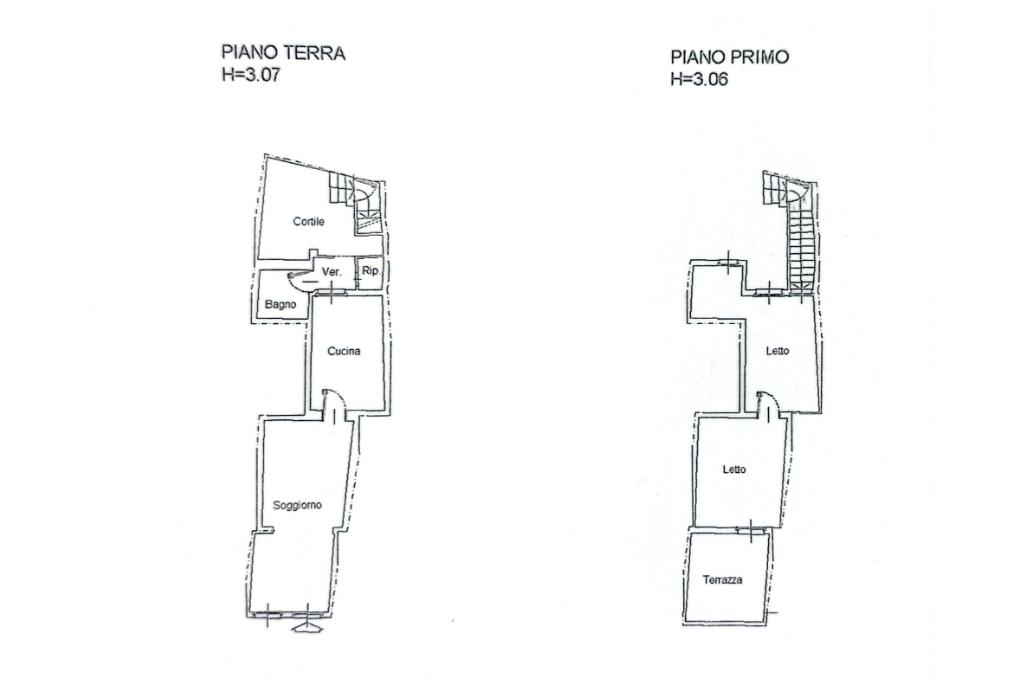 L’abitazione si apre su un’area cortilizia da servitù di passaggio per le abitazioni che conduce all’ingresso della casa, dove troviamo un ampio soggiorno di circa 30 mq, luminoso e accogliente, adiacente alla cucina abitabile. Sempre al piano terra sono presenti un bagno con doccia, un pratico ripostiglio e l’uscita diretta sul cortile privato. All’interno del cortile è situata una scala che conduce al primo piano, dove si sviluppa la zona notte composta da due camere da letto matrimoniali, una delle quali con accesso diretto a una terrazza a livello.